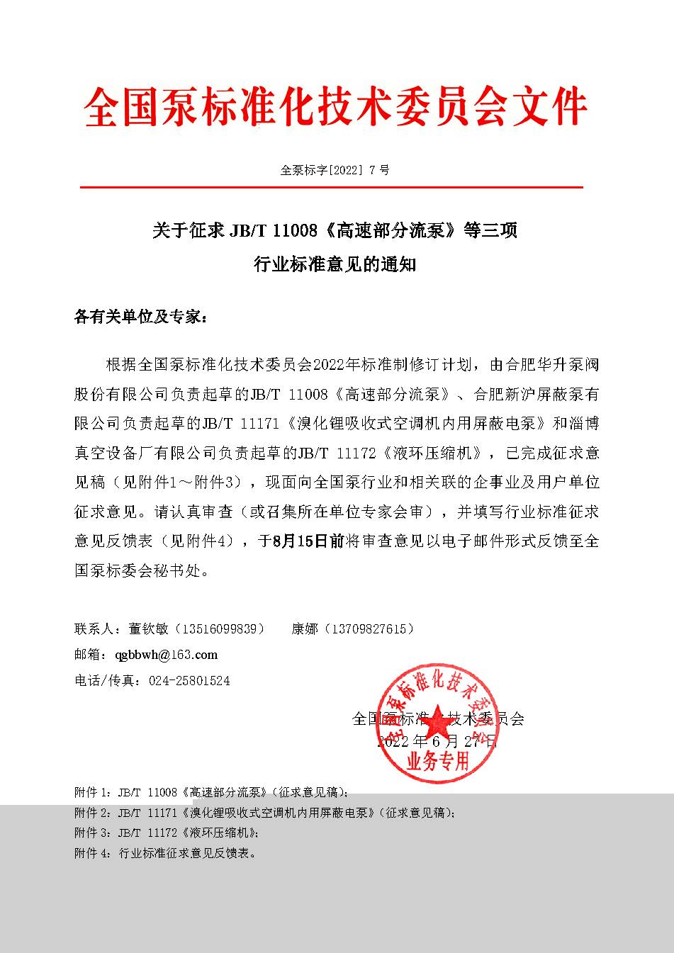 關于征求JB/T 11008《高速部分流泵》等三項 行業標準意見的通知