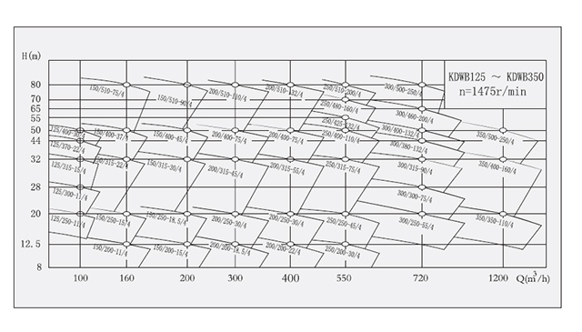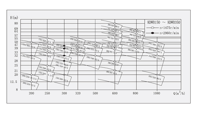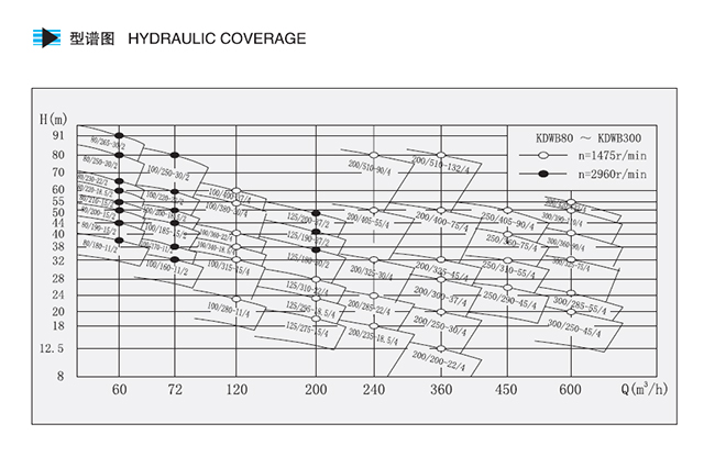 1:流量Q=1.8~1450m3/h,揚(yáng)程H≤160m,工作電壓U=380V,出口口徑DN≤350mm