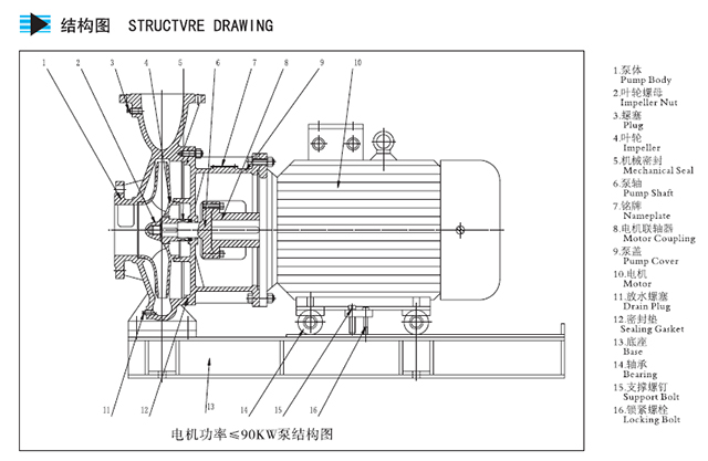 葉輪,泵軸,機(jī)械密封的更換可以不用移動(dòng)管路,由電動(dòng)機(jī)前后滑動(dòng)進(jìn)行拆裝,無需拆卸進(jìn)出水管路。 |