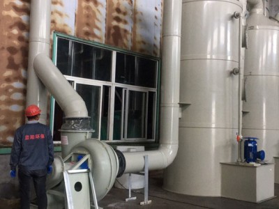 廢氣凈化塔是氣液逆流運行,抽出的廢氣由塔底入口進入塔體,自下而上穿過填料層,從塔頂管道出口經防腐蝕風機排出。中和藥水在塔頂通過液體分布器,均勻地噴淋到填料層中,沿著填料層表面向下流動直到塔底,由管道排出塔外,由防腐循環泵循環工作。由于上升廢氣和下降吸收劑在填料層中不斷接觸,所以上升氣流中溶質的濃度越來越低,到塔頂時已達到吸收要求后排出塔外。相反下降液體中的介質濃度越來越高,到塔底時達工藝條件要求,排出塔外。
